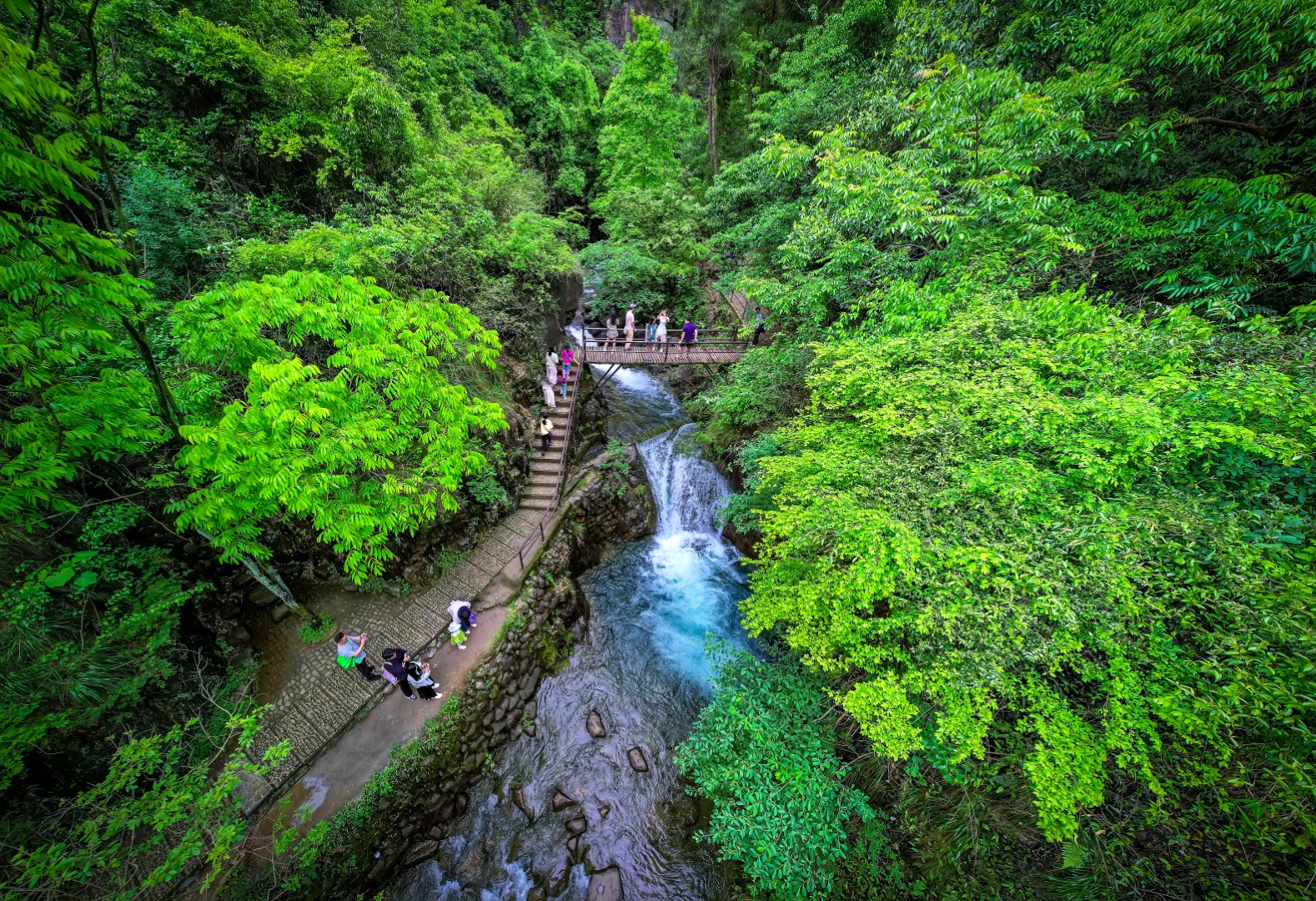 游客入园,穿林海、过栈道、渡索桥、涉清溪,一路行来,洗心涤肺,悠哉游哉,休闲惬意,实为登高揽胜、放松身心的好去处。景区森林中的“蓝宝石”火爆全网!