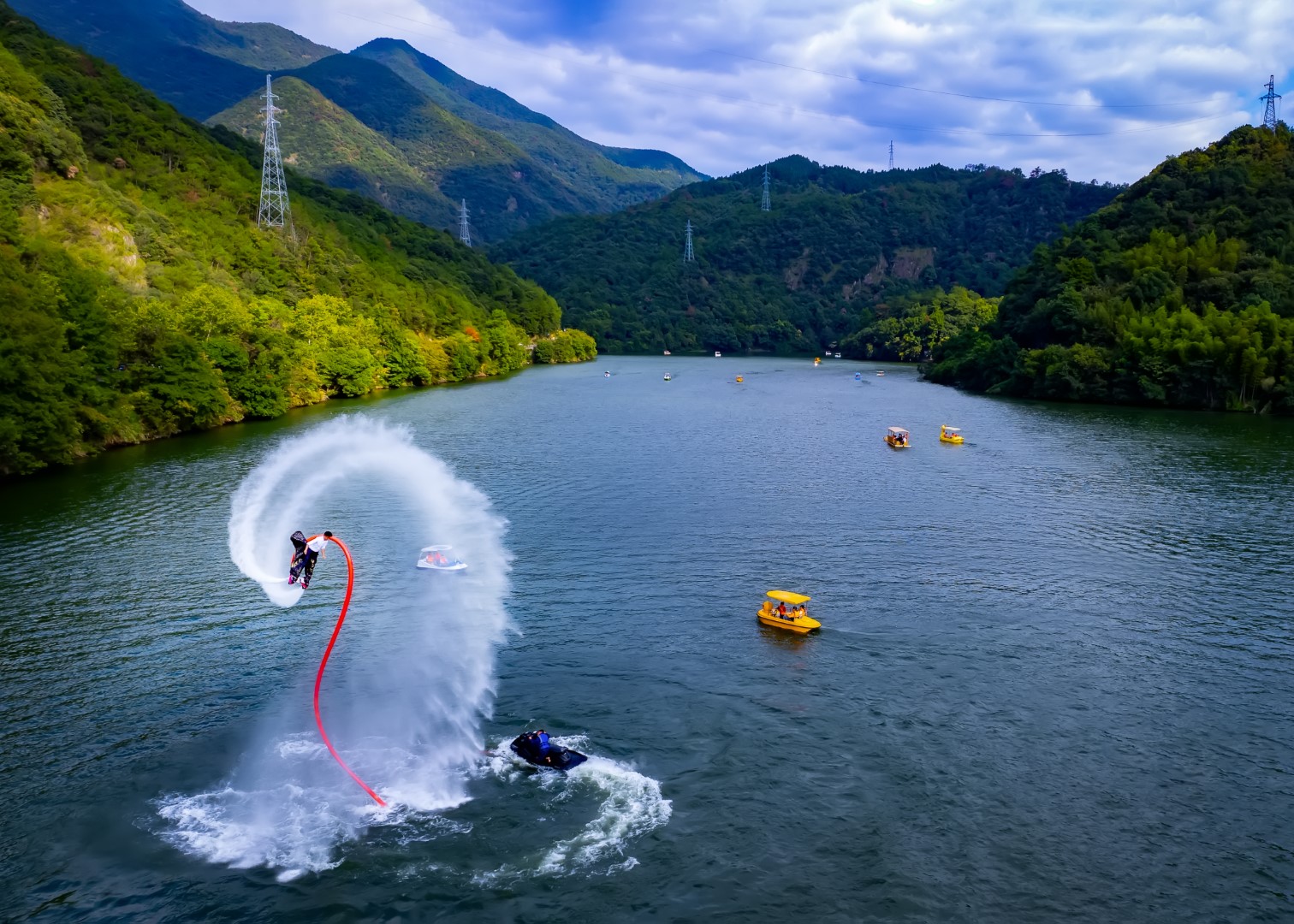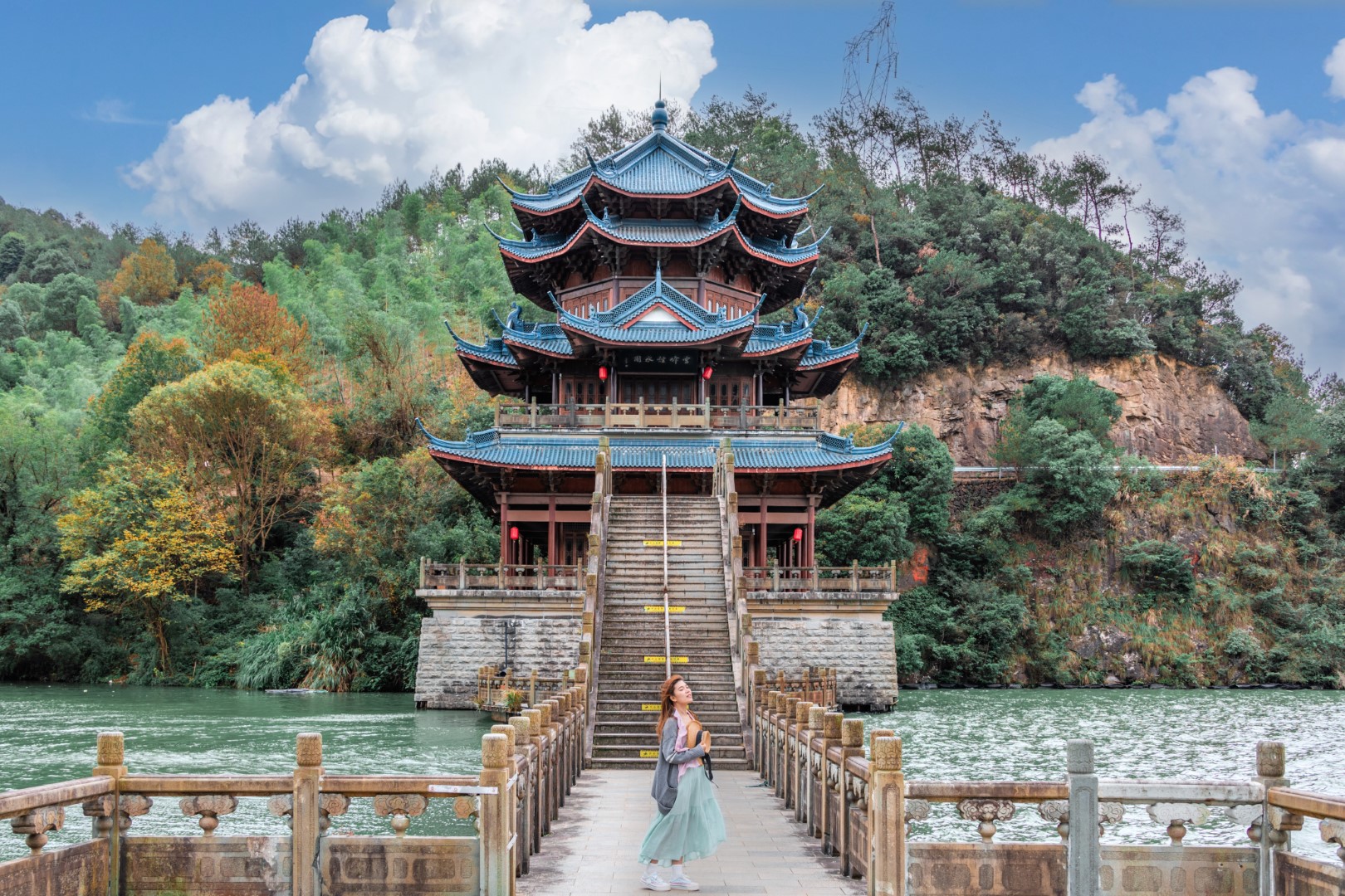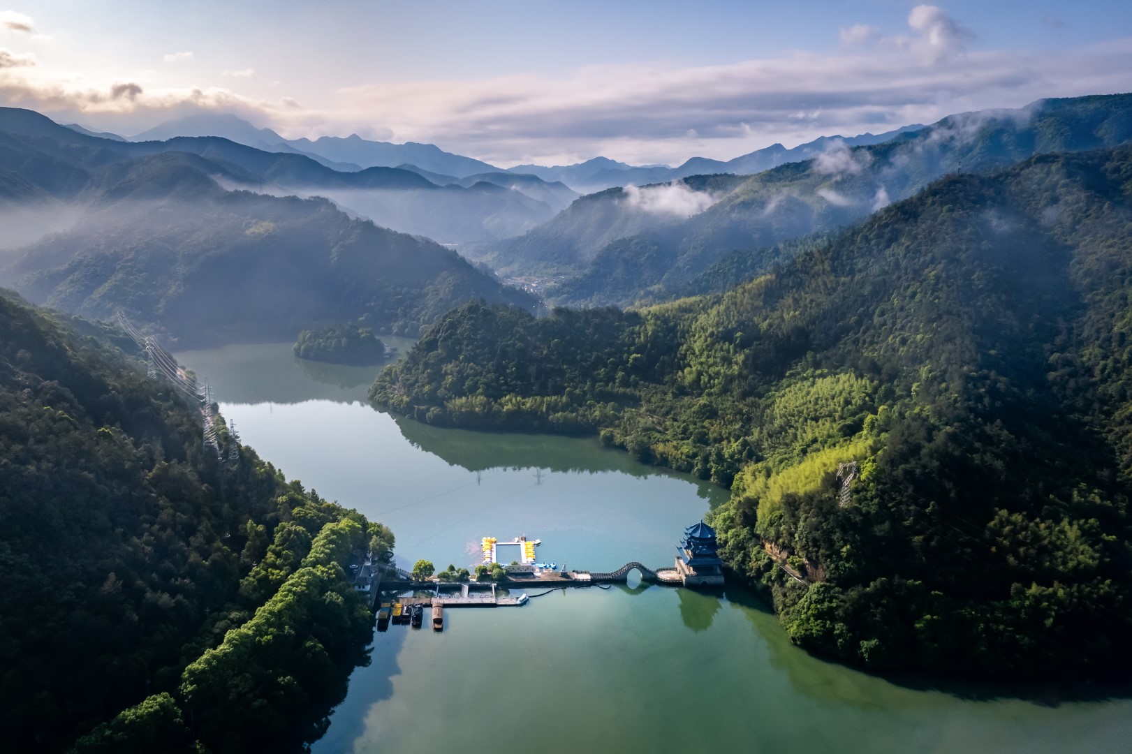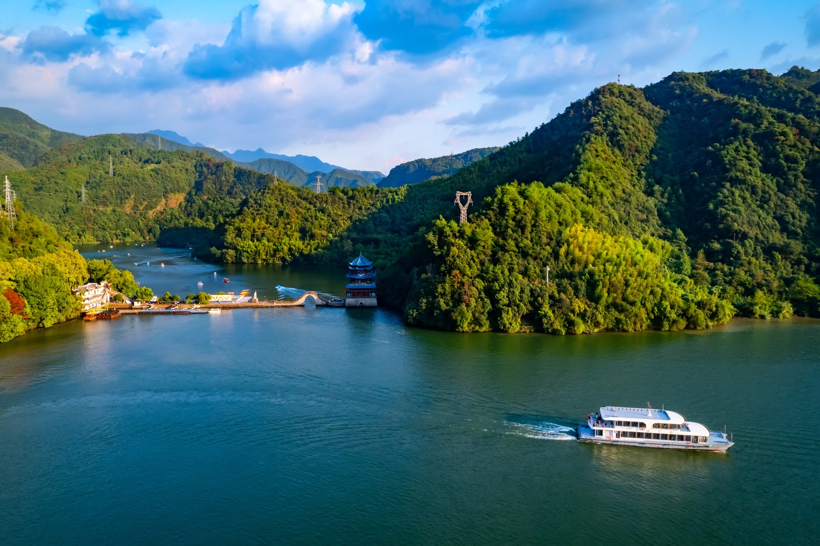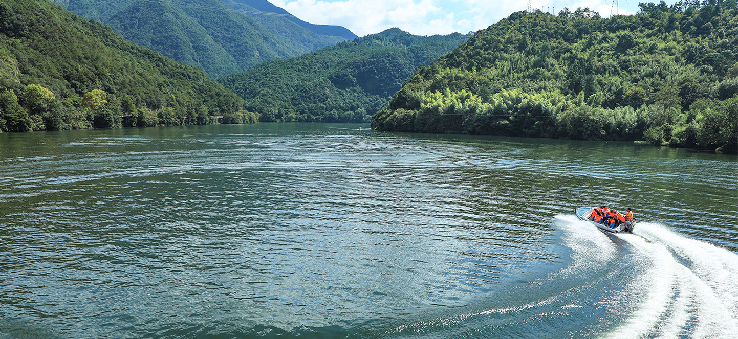 江南龙门湾,汇峡谷、平湖、孤屿、悬崖、瀑布、奇松于一体。游客可在水上乐园,选择电瓶车、摩托艇、竹筏漂流、水上飞人等项目,尽享亲水之乐。设于云峰烟水阁中的富春江诗词文化数字体验馆,带您畅游富春江深厚的文化海洋,“化身”古代诗人游览富春山水。
